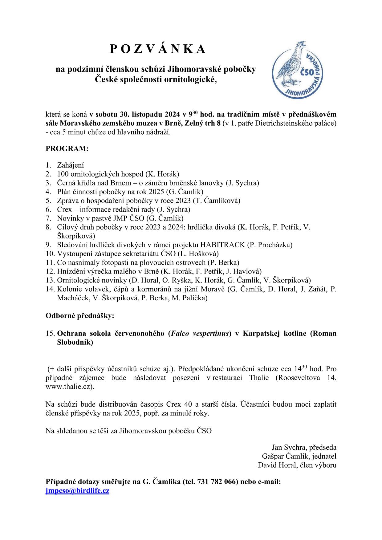Zveme vás na členskou schůzi Jihomoravské pobočky ČSO a těšíme se na shledání!
